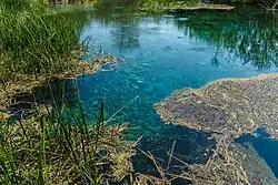 The lake is home to many frogs and toads, like the European tree frog and the European green toad.[8] A large population of Cretan frogs also inhabited the lake in the past but they have been almost completely dislocated since introduction of the American bullfrog to the ecosystem. The American bullfrogs of Lake Agia are the descendants of some individuals that where released in 2000 by a businessman from Chania who bred them in captivity for the production of frog legs. The Cretan frogs, being four times smaller and a lot less aggressive than the American bullfrogs, have lost their habitat in the lake to the invasive bullfrogs.[11] This is one of the main reasons for their categorization as vulnerable by the IUCN in its Red List of Threatened Species.[12]