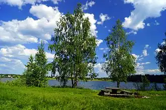 Lake Beloye (Russian: Бе́лое о́зеро, IPA: [ˈbʲɛləjə ˈozʲɪrə] — literally White lake) is a lake in Klepikovsky District, Ryazan Oblast, Russia. It is notable for its relatively great depth for the region - 50 metres (160 ft) - created as a deep gouge in the landscape in the most recent glaciation.[1] The lake is located in the Meshchyera Lowlands, a glacial alluvial plain of swampy lowlands, gravelly moraines and limestone bedrock.[2] It was once connected by an artificial canal to Lake Velikoye ("Grand Lake", a much larger lake with a surface area of 20 square kilometres (7.7 sq mi)). The canal was filled in 2009. Lake Beloye is surrounded by pine forests, with reeds and sedge predominating on the shore. It is a popular lake for recreation and fishing, being home to pike, carp and other fish.