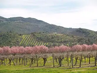 Part of the Mayacamas Range, the Red Hills Lake County AVA lies along the southwestern shores of Clear Lake, separating Excelsior Valley to the east from Big Valley to the west. The hills lie at the foot of Mount Konocti, a volcano which last erupted 11,000 years ago, but which is still regarded as active.[40] The terrain is rolling hills with elevations between 1,400 feet (430 m) and 3,000 feet (910 m) above sea level. Cabernet Sauvignon dominates the Red Hills where 3,250 acres (1,320 ha) are under vines.[41]