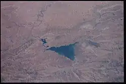 Lake Dukan (or Lake Dokan; Kurdish: دەریاچەی دووکان; Arabic: بحيرة دوكان) is a lake in Kurdistan Region Iraq. It is located close to the city of Ranya, and is a reservoir on the Little Zab created by the construction of the Dukan Dam. The Dukan Dam was built between 1954 and 1959 as a multi-purpose dam to provide water storage, irrigation and hydroelectricity.[1] Prior to the flooding of Lake Dukan, the area was subjected to archaeological research to investigate as many archaeological sites as possible. An archaeological survey in the Ranya Plain documented some 40 archaeological sites with evidence for occupation ranging from the sixth millennium BCE up to the present. Five of these sites were then excavated: Tell Bazmusian, ed-Dem, Kamarian, Qarashina and Tell Shemshara. The excavations at Tell Bazmusian revealed a temple dating to the second millennium BCE.[2] At Tell Shemshara, an early-sixth millennium BCE village was excavated, as well as an early-second millennium BCE palace with a small archive of clay tablets.[3][4] The inhabitants of some 50 villages in the flooded area, around 1,000–1,200 families, were resettled to the west of the lake.[5]
