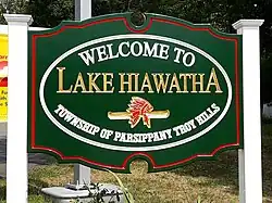 Lake Hiawatha was named after Hiawatha, a 16th-century Native American leader and peacemaker, as evident by plaques on the gazebo on Beverwyck Road, the name of its park, and in the name and emblem of its fire department. However, its name was likely inspired by the popularity of The Song of Hiawatha, an 1855 poem by Henry Wadsworth Longfellow which has little to no correlation with the historical figure of Hiawatha.