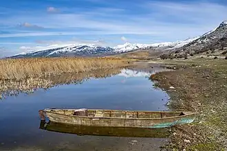 The fishes of the lake are common carp and northern pike as well as Turkish crayfish. The birds of the lake are Eurasian bittern, Eurasian coot, Eurasian spoonbill, Ferruginous duck, greater sand plover, gull-billed tern, purple heron, pygmy cormorant, squacco heron and white-headed duck[3]
