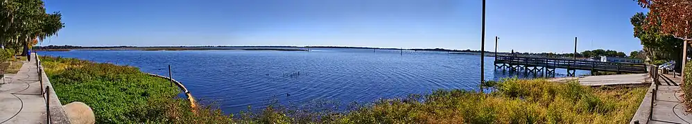 View of Lake Tohopekaliga from Kissimmee. Lake Tohopekaliga is a member of the Kissimmee chain of lakes.