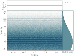 Electrons in an initially Maxwellian plasma move through one-dimensional phase space in the presence of an electrostatic wave.