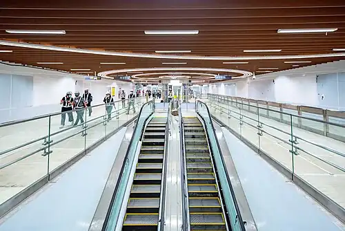 This underground station will have one island platform with two tracks, and will only be served by the all-stops Commuter services. It is a planned transfer station with the Taoyuan Metro Yellow line (Y01).[3]