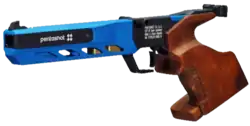 In the mid-2010s, the next generation of laser pistols appeared, which were specially produced for modern pentathlon and laser run.[10] This resulted in different approaches to construction: On the one hand, there are still models with the structure of a match air pistol: a very thin barrel and a more voluminous container underneath which holds additional weights or the laser emitter. On the other hand, there are models that are visually more similar to sport pistols.