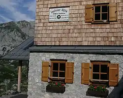 The Laufen Hut (German: Laufener Hütte) is an Alpine club hut operated as a self-service facility that serves as a base for numerous climbing routes, circular routes and crossings, as well as hiking and skiing on the plateau of the Tennen Mountains Range. It sits at an elevation of 1,726 metres (5,663 ft) in the Tennen Mountains, at the foot of the Fritzerkogel mountain in the Austrian state of Salzburg.[1] The Fritzerkogel, with an elevation of 2,360 metres (7,740 ft), is one of the higher peaks in the Tennen Mountains in the Northern Limestone Alps.