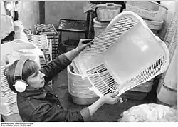 Production of plastic baskets in Ottendorf-Okrilla, Saxony (1981)