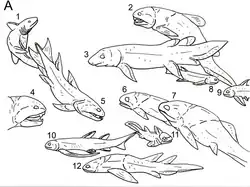 6. ^ Sallan, L. C.; Friedman, M. (2011-12-21). "Heads or tails: staged diversification in vertebrate evolutionary radiations". Proceedings of the Royal Society B: Biological Sciences. 279 (1735): 2025–2032. doi:10.1098/rspb.2011.2454. ISSN 0962-8452. PMC 3311904. PMID 22189401.