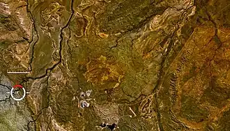Lawn Hill ‘crater’ refers to an Ordovician impact structure, the eroded remnant of a former impact crater, situated approximately 220 km north-north-west of Mount Isa in northwestern Queensland, Australia. The site is marked by an 18 km diameter ring of dolomite hills. The origin of this circular feature was uncertain until the discovery of shatter cones and shocked quartz from uplifted rocks at the centre was reported in 1987.[1][2]