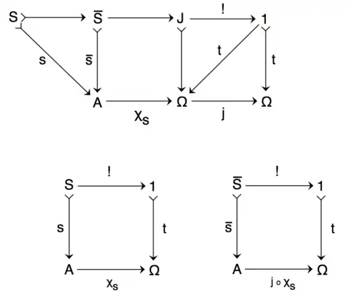 Given a subobject of an object A with classifier , then the composition defines another subobject of A such that s is a subobject of , and is said to be the j-closure of s.