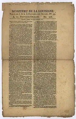 Le Moniteur de la Louisiane[1] (English: The Louisiana Monitor) was the first newspaper in Louisiana. It was published from 1794 to 1815 initially during a period of Spanish occupation of Louisiana to serve the French-speaking population of the region. The newspaper was written in the French language, typically in a four-page format.[2][3]
