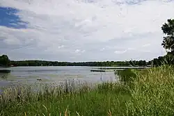 Leaf Lake Township was organized in 1879.[3] This township is named for two lakes, East and West Leaf Lakes, which extend nearly across the township from east to west about the center of the township. Leaf River and Willow Creek flow into East Leaf lake from the north and south ends. Leaf Lake Township was without a railroad until 1902, when the Minneapolis, St. Paul and Sault Ste. Marie Railroad was built through Otter Tail County.[4] [5]