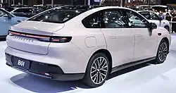 As with the B10, the B01 is available with two rear-wheel-drive electric powertrains with both models on an 800v charging architecture. The base model uses a 132 kW (177 hp; 179 PS) electric motor mounted on the rear axle while all other trims use a 160 kW (215 hp; 218 PS) motor mounted the same way. All trims use both 56.2 kWh and 67.1 kWh LFP batteries except the base trim which is only available with the 56.2 kWh battery.[4] Models with the 56.2 kWh battery can travel 510 to 550 kilometres (317 to 342 mi) on a single charge while models with the 67.1 kWh battery can travel 650 kilometres (404 mi) on a single charge. DC fast charging from 30% to 80% is around 20 minutes regardless of which battery the car has.[5]