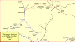 The line between Leeds and Bradford continues in use at the present day, but the rest of the LB&HJR network has closed.