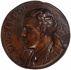 The face of Leopold III on a bas-relief by Pierre De Soete.