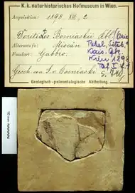 Only two more sets of Jurassic lepidopteran fossils have been found, as well as 13 sets from the Cretaceous, which all belong to primitive moth-like families.[1] Many more fossils are found from the Cenozoic, and particularly the Eocene Baltic amber. The oldest genuine butterflies of the superfamily Papilionoidea have been found in the Early Eocene (Ypresian) MoClay or Fur Formation of Denmark. The best preserved fossil lepidopteran is considered to be the Eocene Prodryas persephone from the Florissant Fossil Beds.[6][7]