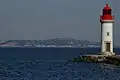 The Les Onglous Lighthouse is the terminating point of the Canal du Midi where the canal enters the Étang de Thau.[1][2][3] The red and white lighthouse is at the tip of a short jetty projecting into the Étang de Thau. It is located on the east jetty at the canal entrance, about 1.5 km (0.93 mi) south of Marseillan in the Hérault department. The Isthmus of Onglous is a narrow strip of land between the Étang and the Mediterranean.[4]