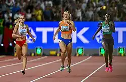 Klaver (center) with Natalia Kaczmarek and Rhasidat Adeleke in the 400 m final at the 2023 World Championships in Budapest, where she finished in 6th place.
