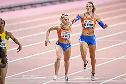 Klaver (right) in the 400 m final at the 2022 World Indoor Championships in Belgrade, where she finished in 6th place.