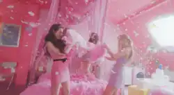An accompanying music video for the song was released at midnight on June 24, 2022, along with "Life's Too Short".[12] The video was inspired by fashion, films and pop culture from the early 2000s in "hazy" tones of pink, purple and blue.[7] The visual shows the group enjoy their lives, eschewing social media to have a sleepover, go to karaoke and attend photoshoots.[12] It has references to films like Mean Girls and Clueless.[7]