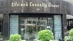 The Life & Casualty Tower (also known as the L & C Tower) is a skyscraper in Nashville, Tennessee located at 401 Church Street. It stands 152.5 meters (409 ft) and has 30 floors. It was designed by Edwin A. Keeble, with structural engineering done by Ross Bryan Associates, and was finished in 1957. It was Nashville's first true skyscraper and the tallest in Tennessee until 1965, when 100 North Main Street in Memphis surpassed it.