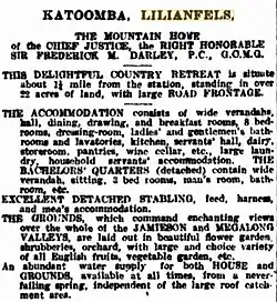 10. ^ "A MOUNTAIN HOME". The Daily Telegraph. No. 10830. New South Wales, Australia. 7 February 1914. p. 15 – via National Library of Australia.