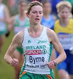 Linda Byrne (born 13 May 1986) is an Irish long distance runner who won team gold for Ireland at the 2012 European Cross Country Championships in Budapest. Finishing eighth overall in the women's senior race, Byrne's gold-medal-winning teammates were Fionnuala Britton, Ava Hutchinson, Lizzie Lee, Sara Treacy and Sarah McCormack.
