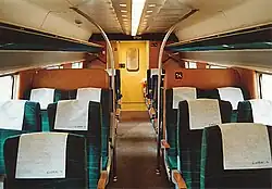 On the sections Oslo–Stockholm and Gothenburg–Copenhagen, Linx operated X2 electric multiple units owned by SJ. Forty-three units were delivered to SJ by Kalmar Verkstad between 1990 and 1997. The trains are standard gauge, have a power output of 3,260 kilowatts (4,370 hp) and a maximum speed of 200 kilometres per hour (120 mph). Each train consists of a locomotive, a number of middle cars and an end car. The trains use 15 kV  16.7 Hz AC power supply in Sweden and Norway, and 25 kV 50 Hz AC in Denmark.[23] Linx had two classes: business and second. On business class, a warm meal and drink was included, while in second class, a restaurant car was provided.[24] Seats had a power outlet for laptops, and free wireless Internet.[25]