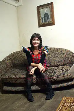 She appeared in three films in 1990 and 1991, Chambre à part, Sans un cri, and Après l'amour.[2] Her 1991 album, Des fleurs pour un caméléon, was produced by Étienne Daho, she had already contributed vocals for one of Daho's earliest and biggest hits, "Week-End À Rome".[4] Daho was given carte blanche in the studio because Lio was busy shooting a film; however, when his work was over, he showed no interest in promoting the album with her, limiting the success of the album.[5] Her next album, Wandatta, presenting a more mature approach in contrast with her previous image, and with a sleeve designed by Guy Peellaert, was released in 1995. However, it was relatively unsuccessful, and she withdrew for a time to live near Angoulême with her partner and children. In 1998, she recorded with Esteban in Cuba, and in 1999 she appeared in 50 performances of the French adaptation of Seven Brides For Seven Brothers, a musical staged at the Folies Bergère. She had two kids that year. She released the single "Je suis comme je suis" and the album Chante Prévert containing interpretations of the poems of Jacques Prévert, in 2000. After performing the songs on tour throughout France, Europe and North Africa, she released the live album Cœur de rubis in 2004. She also appeared in over 250 performances of the theater play Le Bébé, an adaptation of a book by Marie Darrieussecq staged by Marc Goldberg.[2][3]