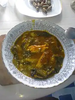 Egusi soup Nigeria A stew mainly consisting of egusi originating from Yoruba people of Nigeria.