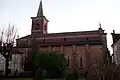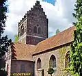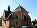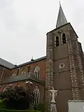 Schendelbeke (Geraardsbergen) Sint-Amanduskerk[37] first mentioned in 1139, transept and lower parts of the tower Gothic and of brick, alterations in 1669 and 19th century