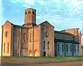 most of the walls of brick, but a lot of stone tracery; was a cathedral 1561 to 1801