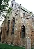 Koksijde Ten Duinen Abbey[14] founded 1107, nave of the church 1354 Gothic parts of brick with some ashley;