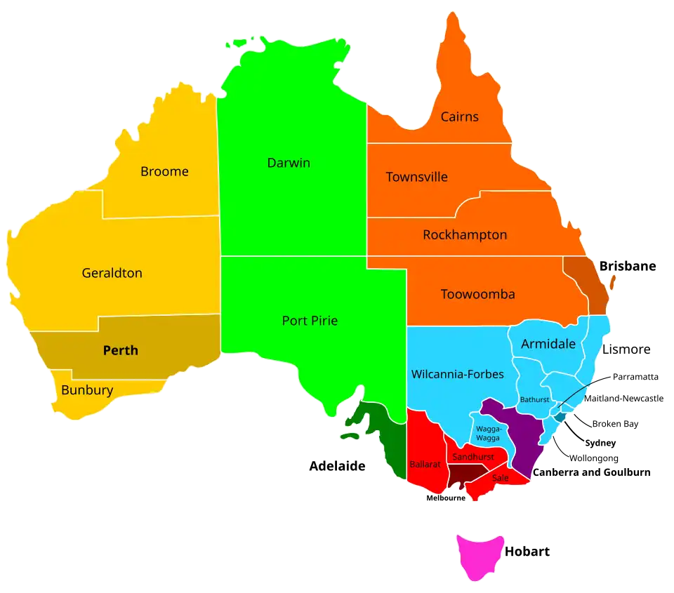 Currently there are 33 Catholic dioceses in Australia, consist of 5 metropolitan archdioceses, 21 suffragan dioceses, 2 non-metropolitan archdioceses, and 5 Eastern Rite dioceses. In addition there is a military ordinariate and a personal ordinariate.[1]