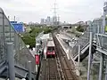• Thames Wharf, located south of Canning Town, was safeguarded during the construction of the Beckton extension. Given construction of flying junctions for access to the Stratford International and Woolwich Arsenal branches of the DLR, construction of this station is no longer possible.[42] A new safeguarded site for a Thames Wharf station was constructed as part of the London City Airport extension.[36]