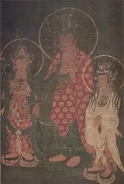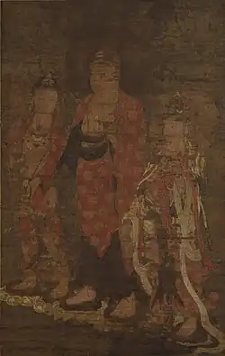 - ^ a b c 絹本著色阿弥陀三尊像 [Amida Triad, colour on silk] (in Japanese). Agency for Cultural Affairs. Retrieved 26 October 2013.