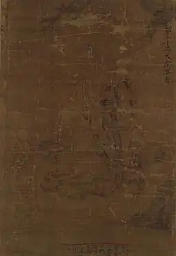 | Arhat | 1235 | Cleveland | Cleveland Museum of Art | one of circa ten known fragments of a hand scroll depicting 500 Arhats, remounted as a hanging scroll | ![]() |