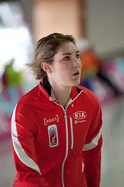 Anastasia Bucsis Δ | Speed skating | 2010, 2014 | Came out in 2013, in opposition to Russian anti-gay laws.[72] Was previously in a relationship with Charline Labonté.[62] | ||