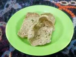 Muar, Johor Snack Cracker A deep-fried circular-shaped-dried-noodles snack, made from flour with other ingredients, eaten with Sambal.