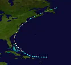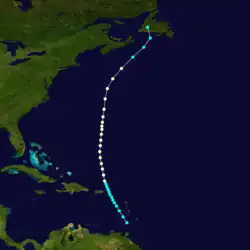 5. ^ This hurricane caused an estimated $10 million (2009 USD) in damage throughout Atlantic Canada.[8]