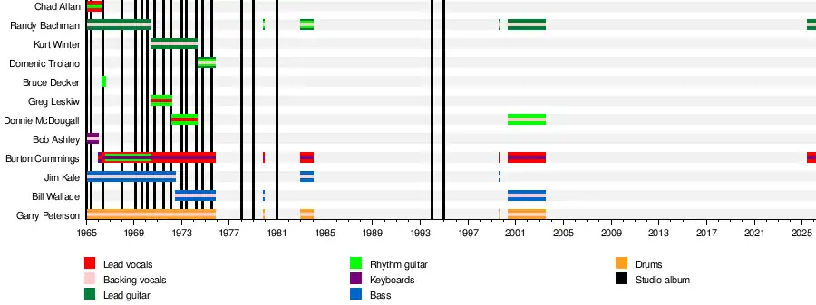 Randy Bachman 1962–1970 (reunions 1979, 1983, 1999, 2000, 2000–2003, 2025-present)