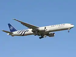 Aeroflot Boeing 777-300ER in SkyTeam livery taking off.