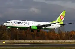 S7 Airlines Boeing 737-800 in Oneworld livery landing at Domodedovo International Airport.