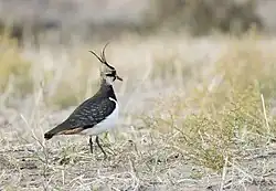 Bustards are large terrestrial birds mainly associated with dry open country and steppes in the Old World. They are omnivorous and nest on the ground. They walk steadily on strong legs and big toes, pecking for food as they go. They have long broad wings with "fingered" wingtips and striking patterns in flight. Many have interesting mating displays.