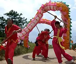 (舞龙; lit. "Dragon dance") or Long wu (龍舞)[4]
