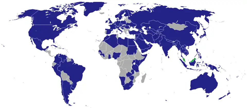 - ^ a b c d e f g h i j k l m n o p q r s t u v w x y z aa ab ac ad ae af ag ah ai aj ak al am an ao ap aq ar as at au av aw ax ay az ba bb bc bd be bf bg bh bi bj bk bl bm bn bo bp bq br bs bt bu bv bw bx by bz ca cb cc cd ce cf cg ch ci cj ck cl cm cn co cp cq cr cs ct cu cv cw cx cy cz da db dc dd de df dg dh di dj dk dl dm dn do dp dq dr ds dt du dv dw dx dy dz ea eb ec ed ee ef eg eh ei ej ek el em en eo ep eq er es et eu ev ew ex ey ez fa fb "Diplomatic and Consular List". Ministry of Foreign Affairs of Malaysia. May 2025. Retrieved 4 July 2025.