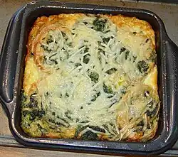 Zucchini slice Savory Australia A baked dish of eggs, cheese, and zucchini.[64]