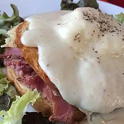 Croque Madame Savory France A croque-monsieur sandwich served with a fried egg or poached egg on top