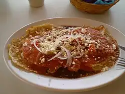 Huevos motuleños Savory Mexico A breakfast food made with eggs on tortillas with black beans and cheese, often with other ingredients such as ham, peas, plantains, and salsa picante.[35]